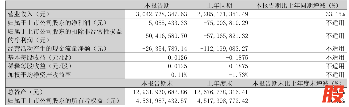 中证智能财讯飞南资源(301500)4月26日披露2025年第一季度报告。公司实现营业总收入30.43亿元,同比增长33.15%;归母净利润505.54万元,同比扭亏;扣非净利润5041.66万元,同比扭亏;经营活动产生的现金流量净额为-2635.48万元,上年同期为-1.12亿元;报告期内,飞南资源基本每股收益为0.0126元,加权平均净资产收益率为0.11%。